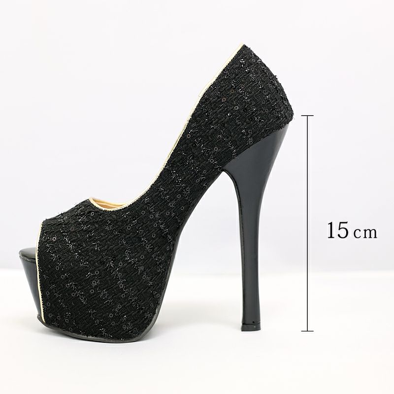 4. [Angel-R/エンジェルアール] 高級キラキラスパンコールツイードパンプスオープントゥ厚底ハイヒール