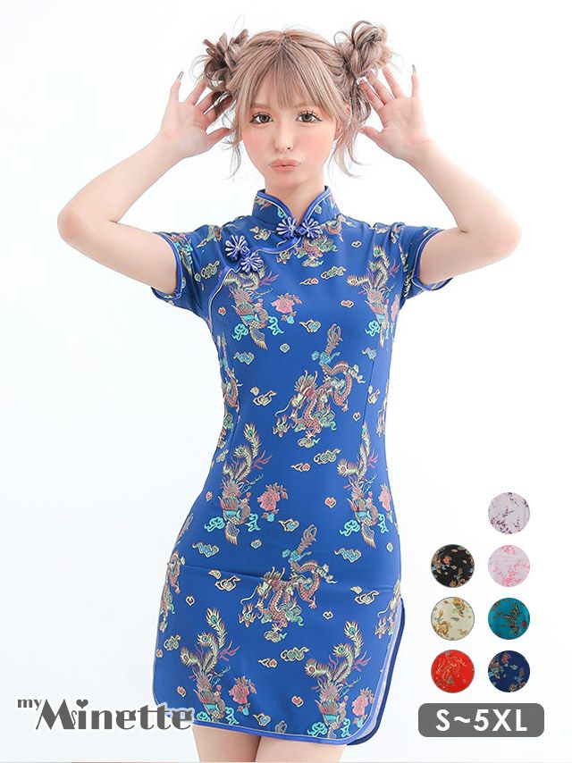 5. [SALE] コスプレ 半袖セクシー総柄サイドタイトプチプラチャイナ服 [1点セット] (チャイナ服)