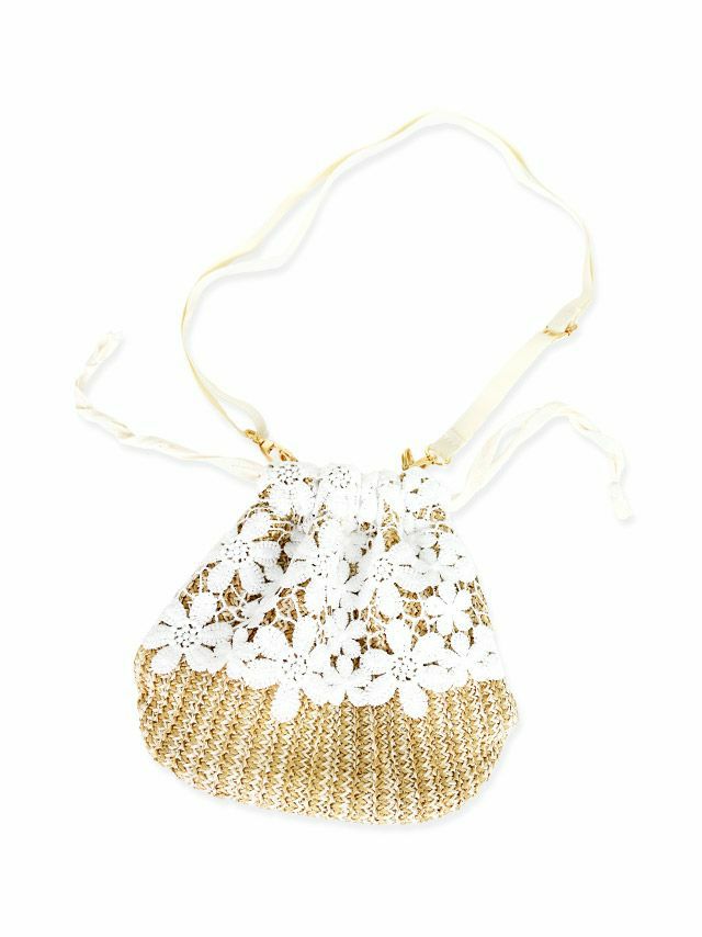 4. [ワケありセール] (ショルダー紐のみ・持ち手なし)水着小物 選べる花柄レース&リーフ柄レース2Way巾着かごバッグ