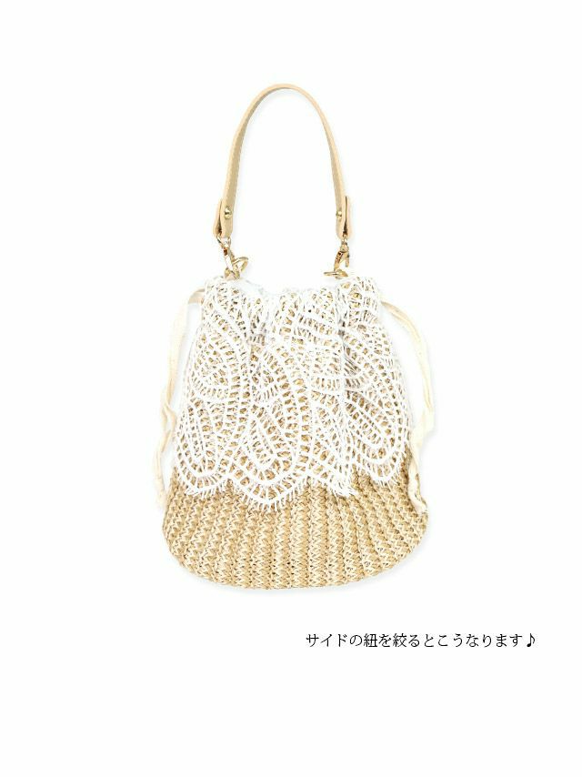 選べる花柄レース&リーフ柄レース2Way巾着訳ありかごバッグ