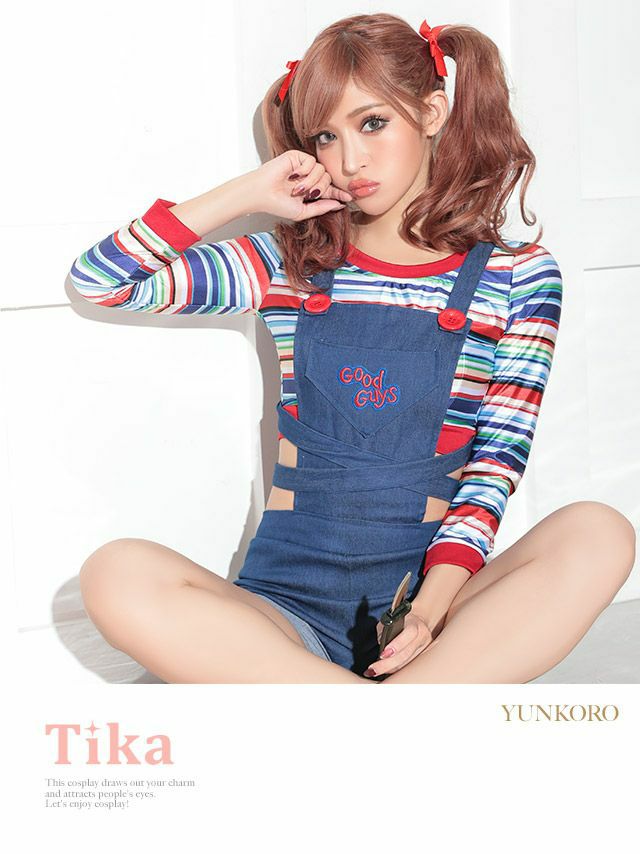 4. [ワケありセール] 3点set ホラーキラードールキャラクター [トップス+オーバーオール+リボン]