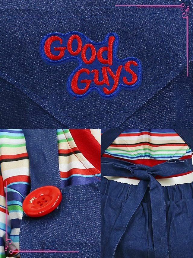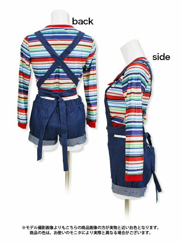 ちょっぴり訳ありの為、激安価格◎ [ワケありセール] 3点set ホラーキラードールキャラクター [トップス+オーバーオール+リボン]