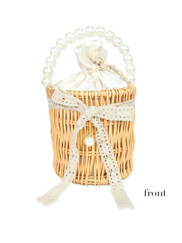 4. [ワケありセール] 選べるラウンド型&スクエア型パールハンドルレースリボンかごバッグ
