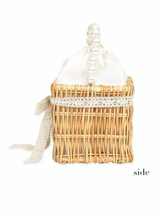 選べるラウンド型&スクエア型パールハンドルレースリボン訳ありかごバッグ
