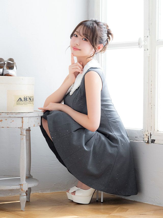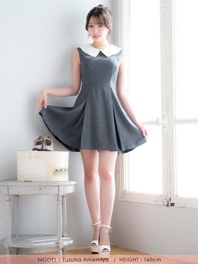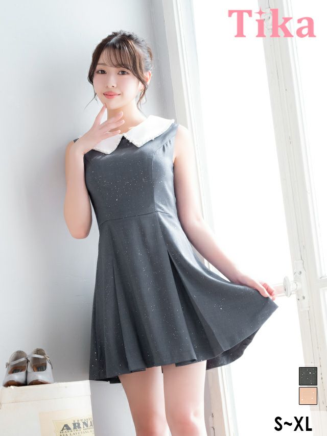 3. [SALE] [ワケありセール] ワンピース Aライン ミニドレス ノースリーブ 上品 襟付き ビジュー ブラジャーのまま ボックスプリーツ 同伴 キャバドレス (横田未来着用)