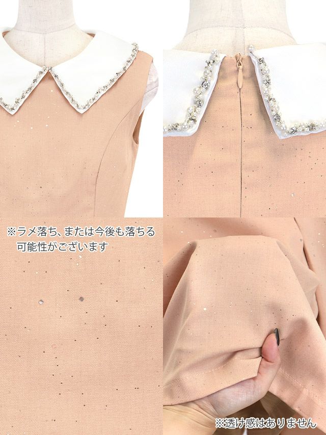 ワンピース Aライン ミニドレス ノースリーブ 上品 襟付き ビジュー ブラジャーのまま 訳あり ボックスプリーツ 同伴の商品詳細1