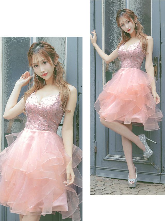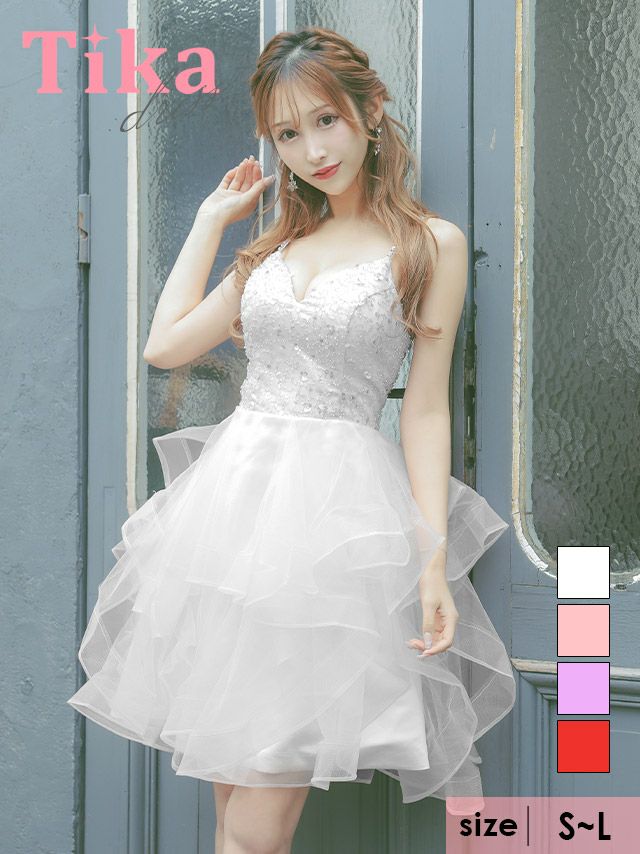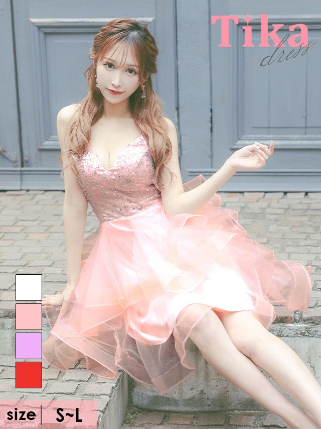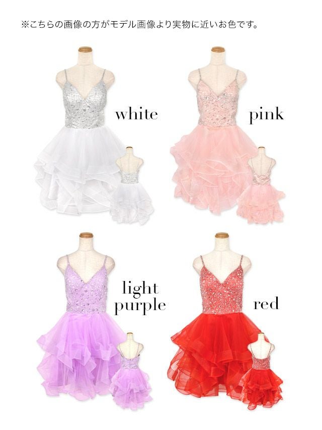 キャミソールキラキラスパンコール付き訳ありふわふわチュールフレアミニドレスのカラーバリエーション