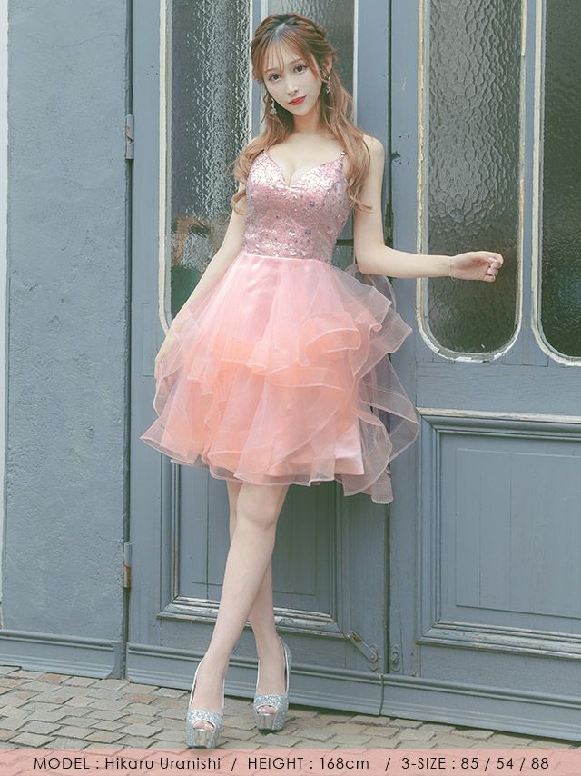 キャミソールキラキラスパンコール付き訳ありふわふわチュールフレアミニドレスの商品詳細1