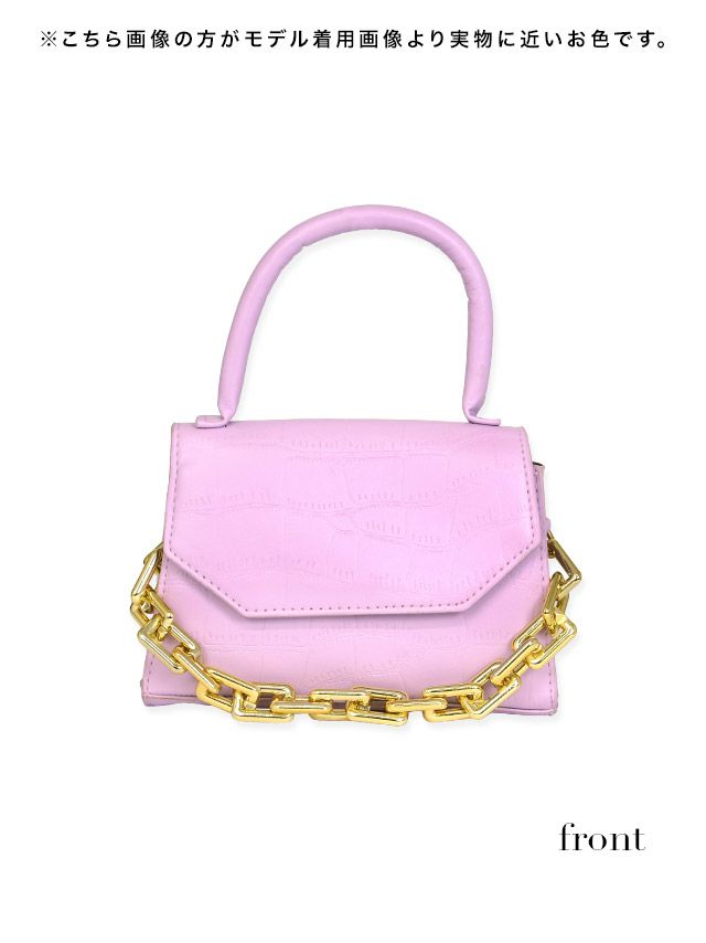 シンプルデザインで使いやすい♪ 2Wayゴールドチェーン付きクロコダイル型押しミニハンドバッグ