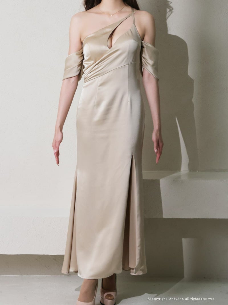 5. [Andy/アンディ] 高級 Aライン ロングドレス シンプル 谷間 大人 上品 オフショルダー ワンショルダー スリット