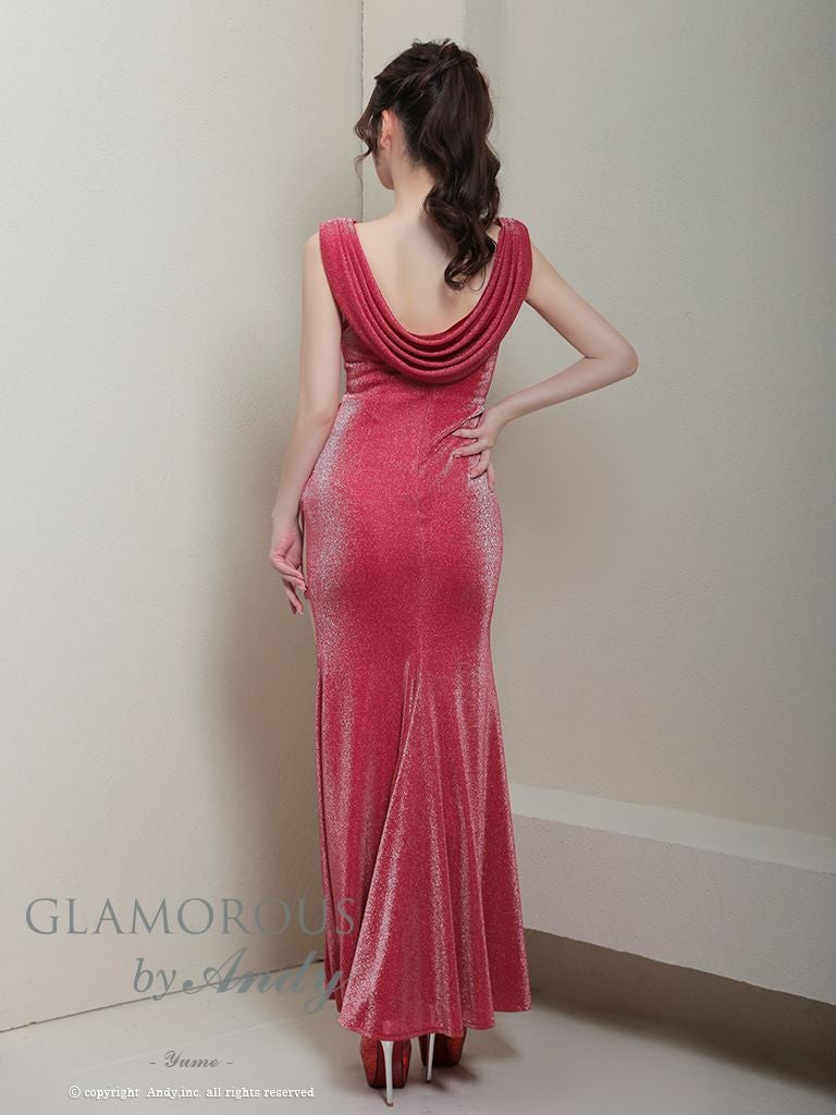 シンプルで色気溢れるデザイン☆ [AndyGLAMOROUS/アンディグラマラス] 高級 ノースリーブ ラメ ドレープデザイン タイトロングドレス