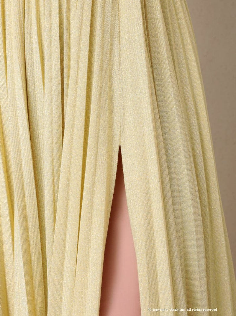 スリットが美脚を引き立てる★ [AndyGLAMOROUS/アンディグラマラス] 高級 キャミソール ワンカラー バストカット ラメ ビジューチェーン タック プリーツ Aライン ロングドレス
