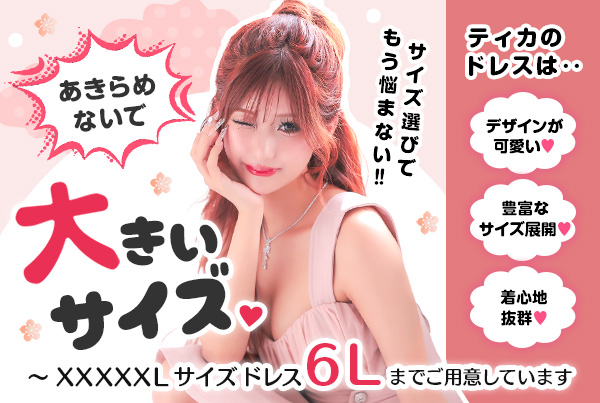 体型で可愛いドレスを諦めてほしくない。あなたに合うぴったりサイズで綺麗に着ていただきたい!というTikaの想いから、実際夜の世界で働く女の子の意見をリアルに取り入れてドレスを作っているから♪