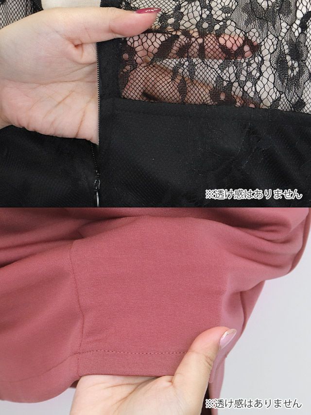 4. [SALE] ハイネックシアーフラワーリングベルトネックリボン袖ありブローチ付きタイトミニドレス (Sサイズ~XXLサイズ) (重川茉弥/キャバドレス着用)