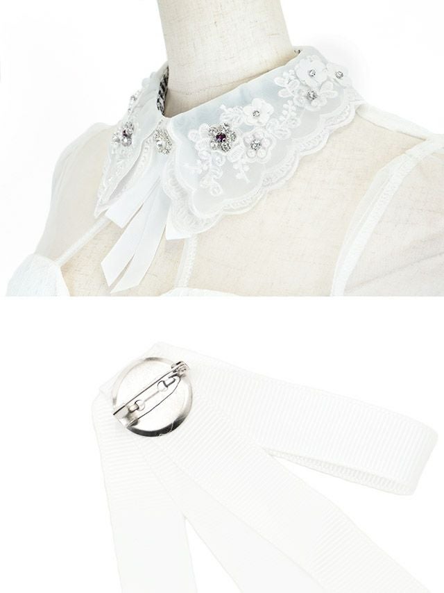 お花をモチーフにしたビジュー付きの襟で映え顔にメイク♪