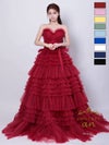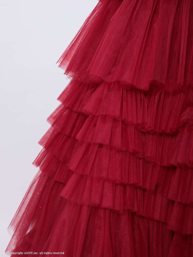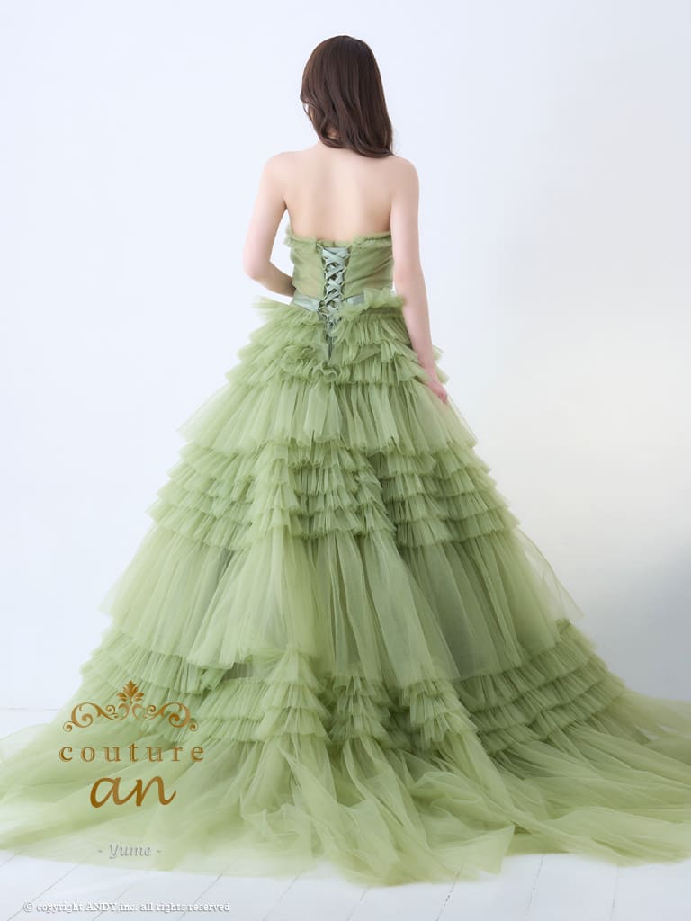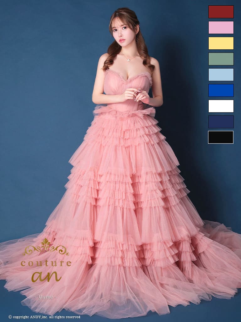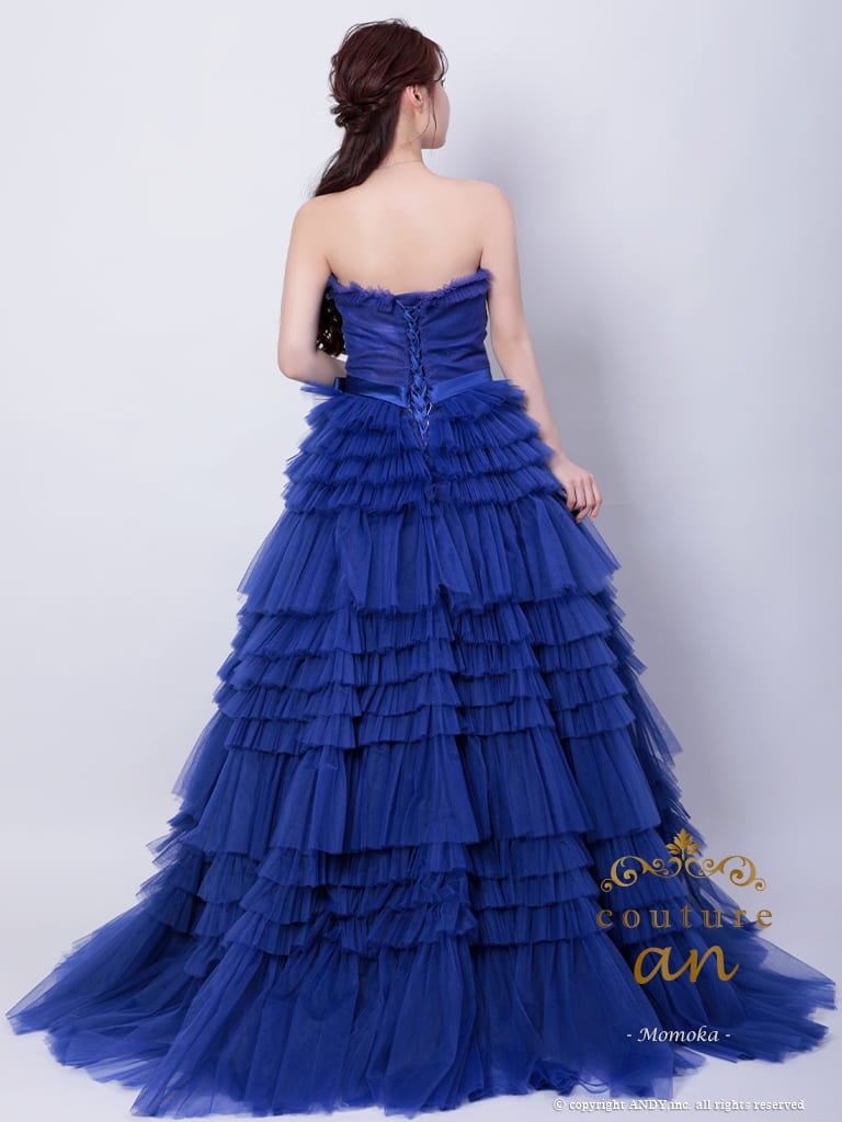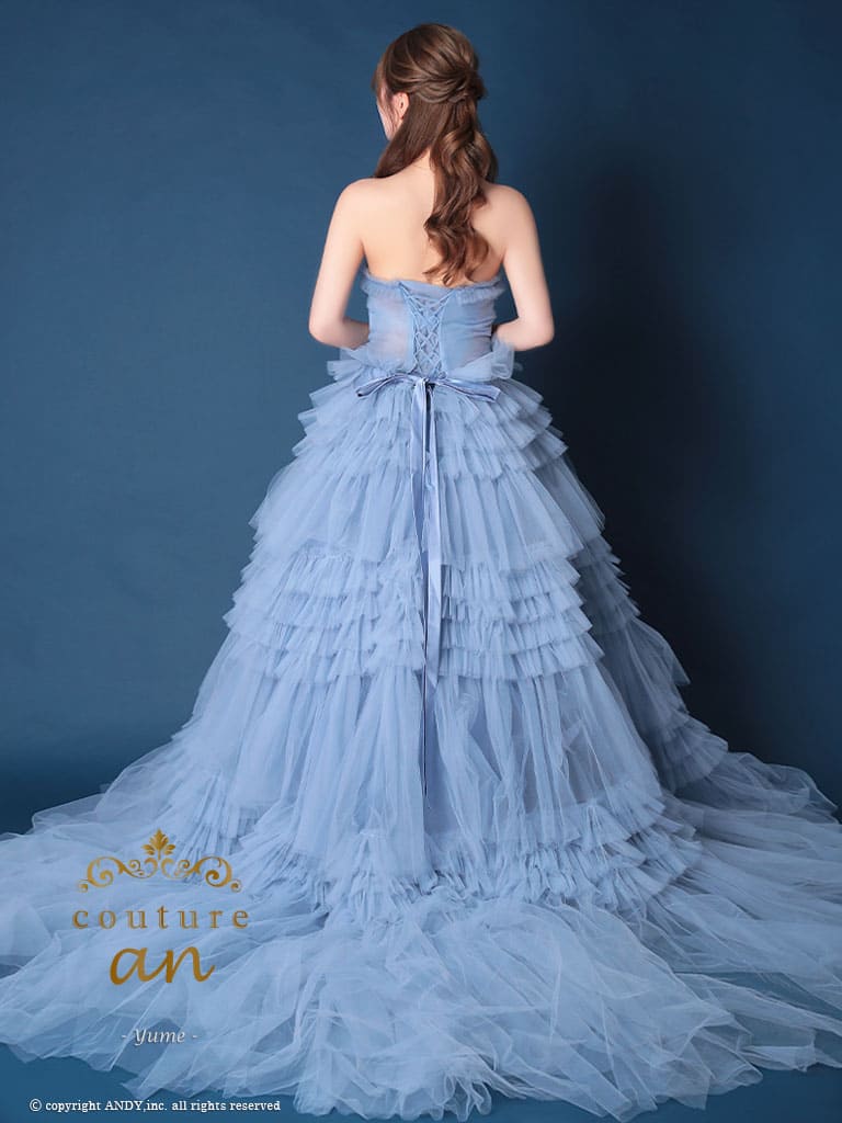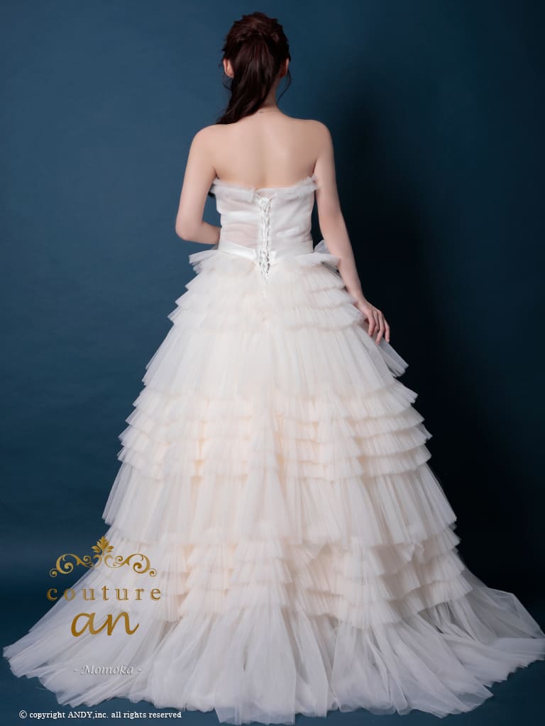 5. [couture an/クチュールアン] 高級 バースデー ベアトップ 段チュール リボン バストカット Aラインロングドレス