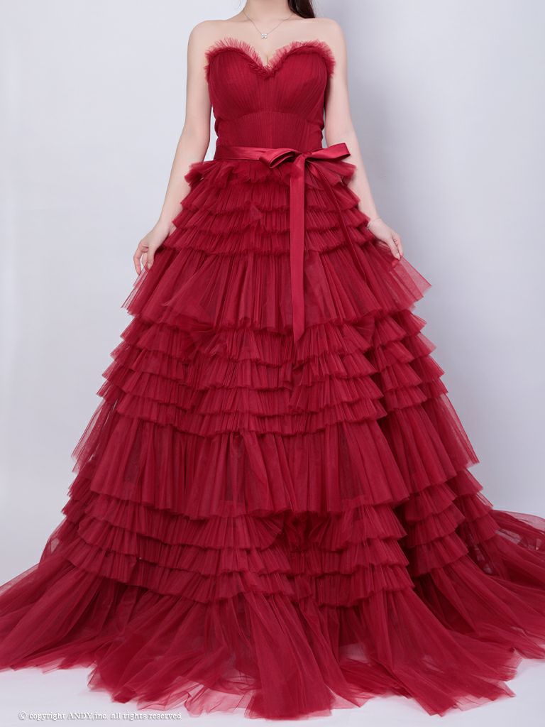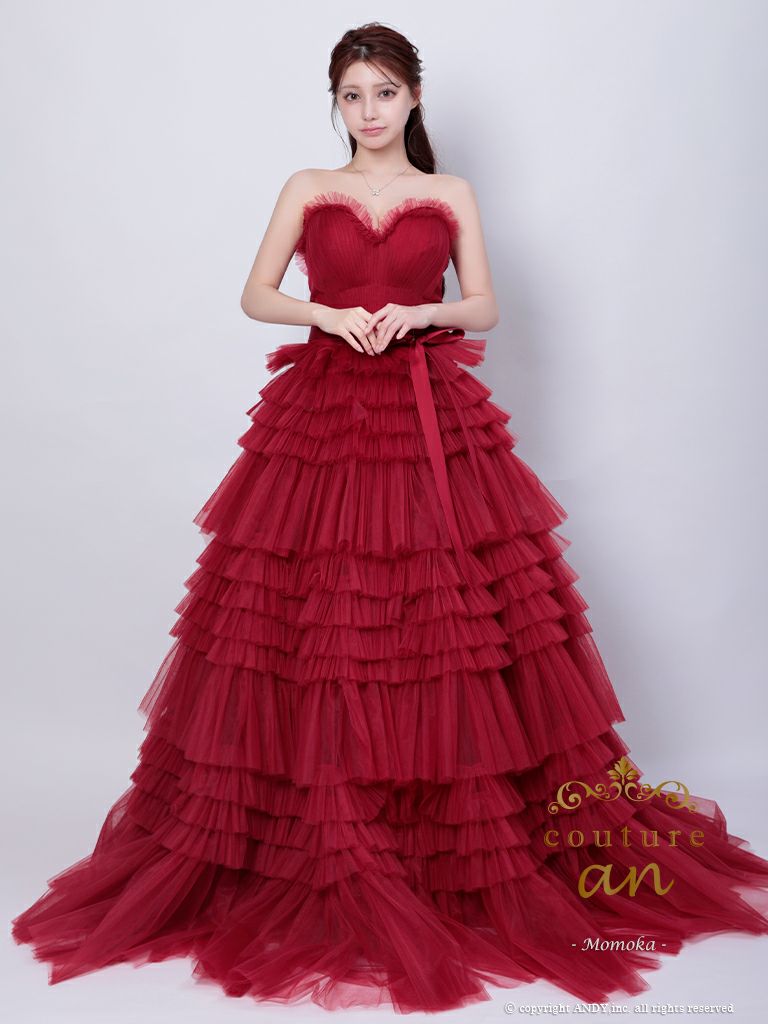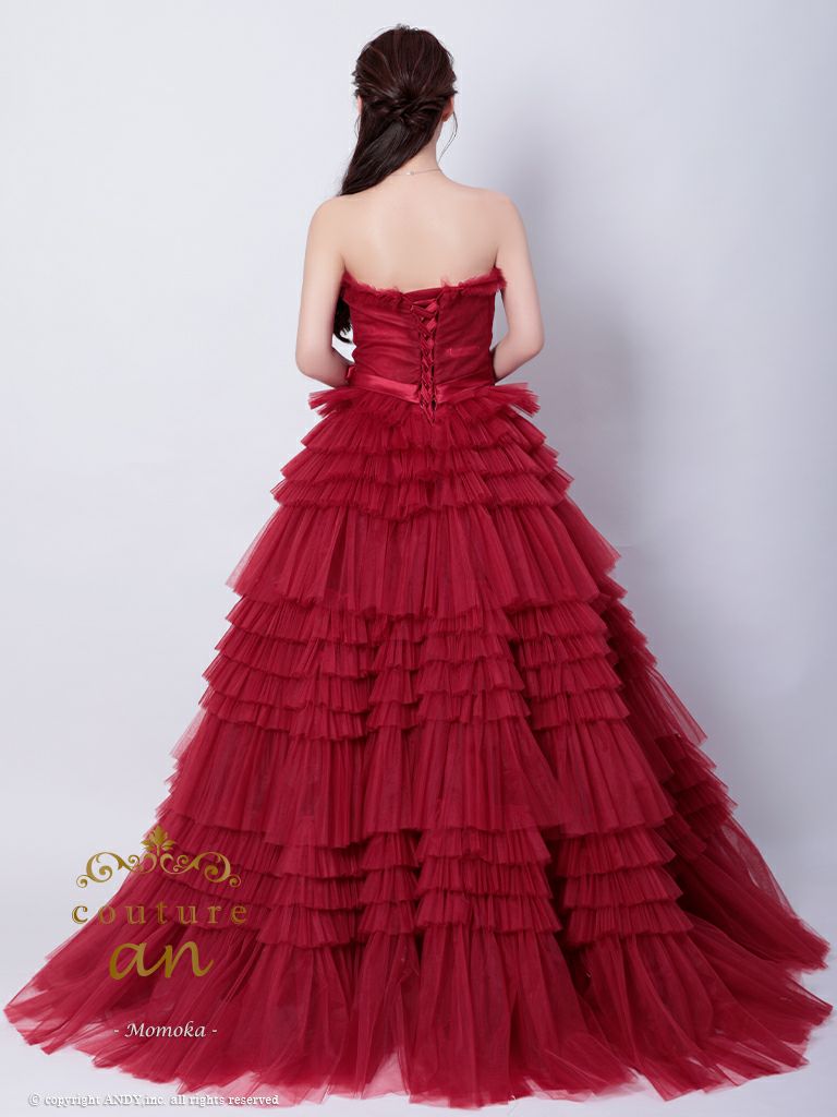 4. [couture an/クチュールアン] 高級 バースデー ベアトップ 段チュール リボン バストカット Aラインロングドレス