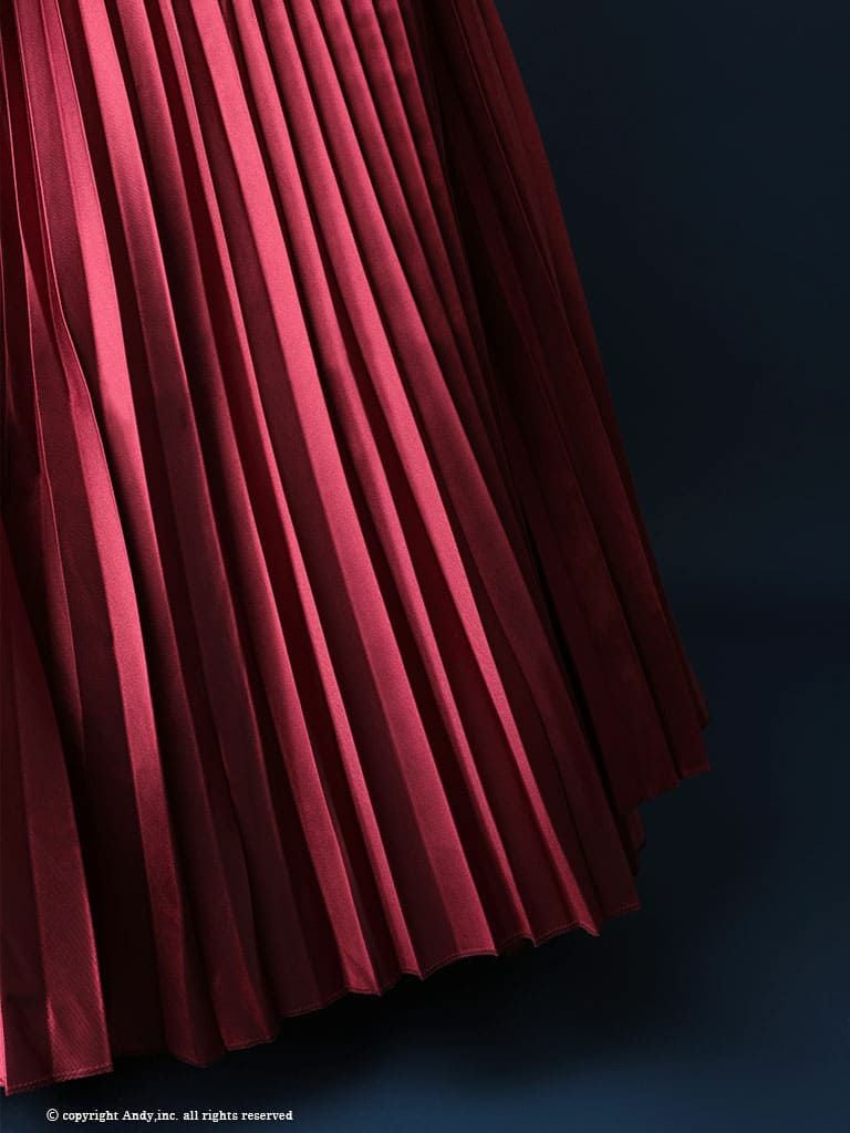 ワンカラーで高級感のあるドレス☆ [PREMIUM Andy/プレミアムアンディ] 高級 バースデー ノースリーブ リボン サテン フリル プリーツ フレア ロングドレス