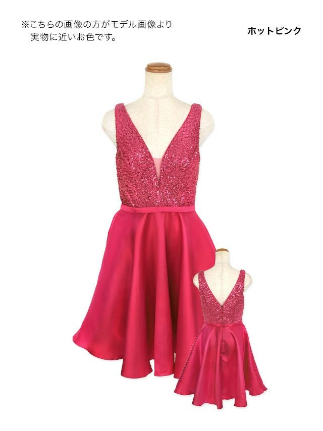 キラキラスパンコールノースリーブ切り替えサテンフレアミニドレスの商品詳細1