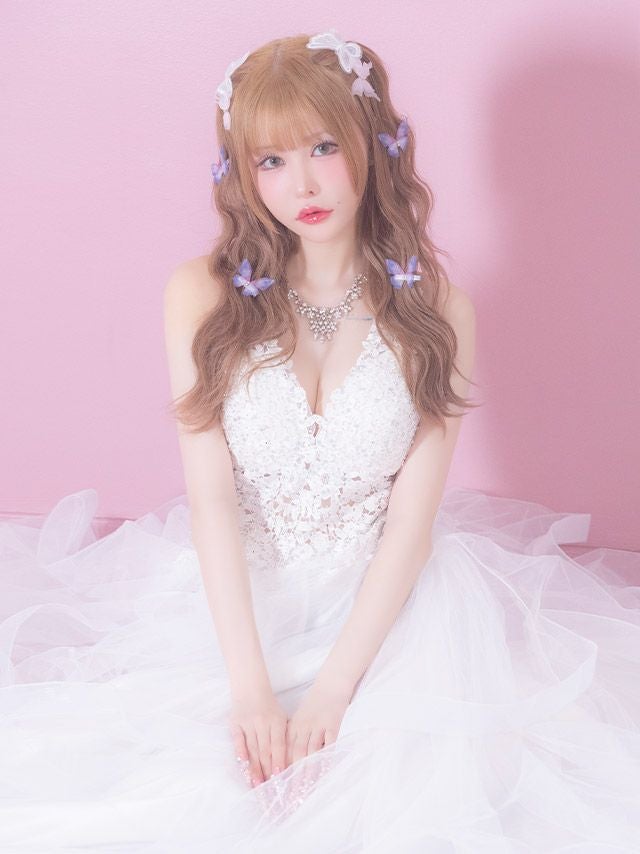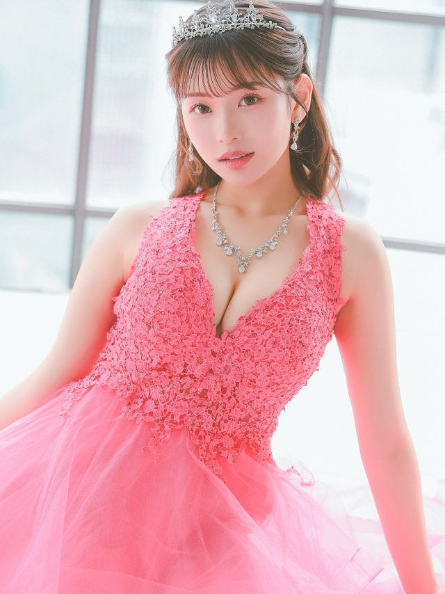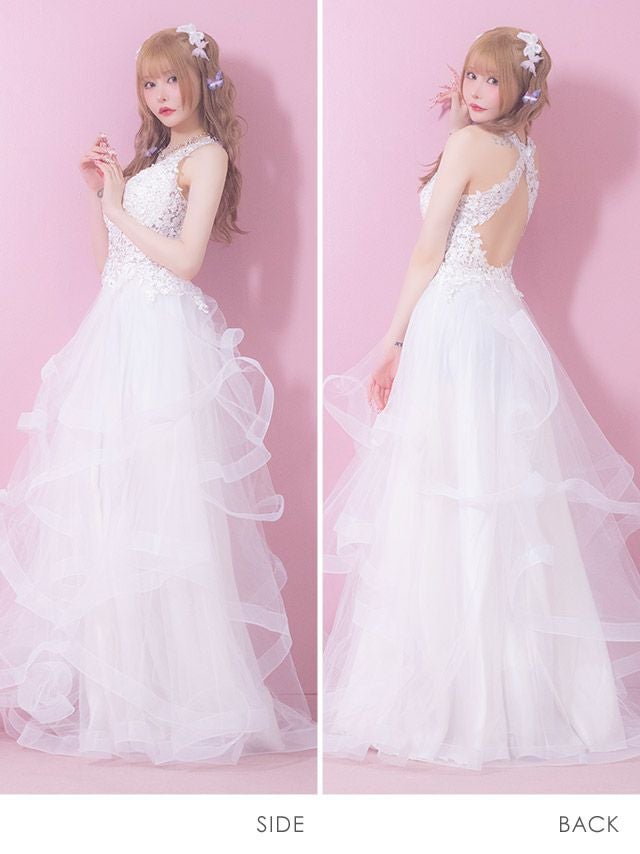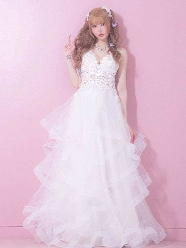 大胆に開いた胸元と立体的なフラワー刺繍レースで