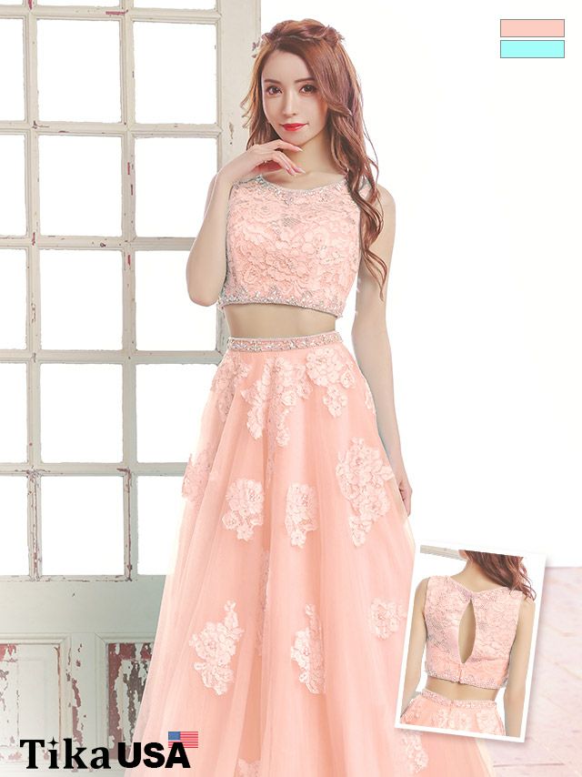 ビジューレースデザインセットアップチュールロングインポートドレスのカラーバリエーション