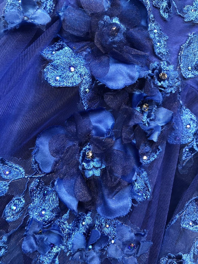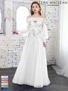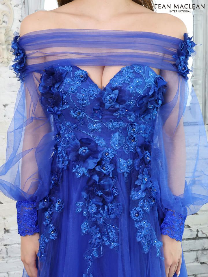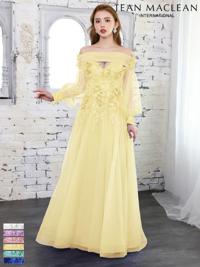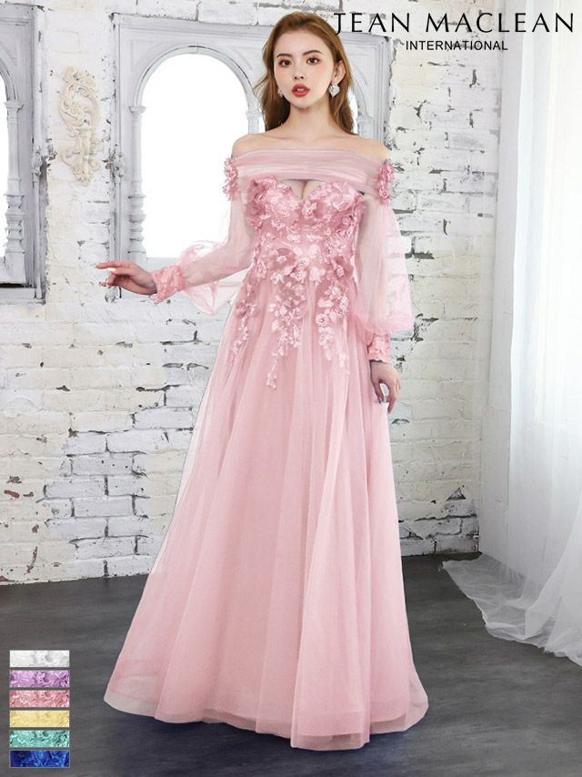 6. [JEANMACLEAN/ジャンマクレーン] 高級 バースデーシアー長袖 袖ありオフショルダー立体フラワービジュー高級 バースデーAラインロングドレス