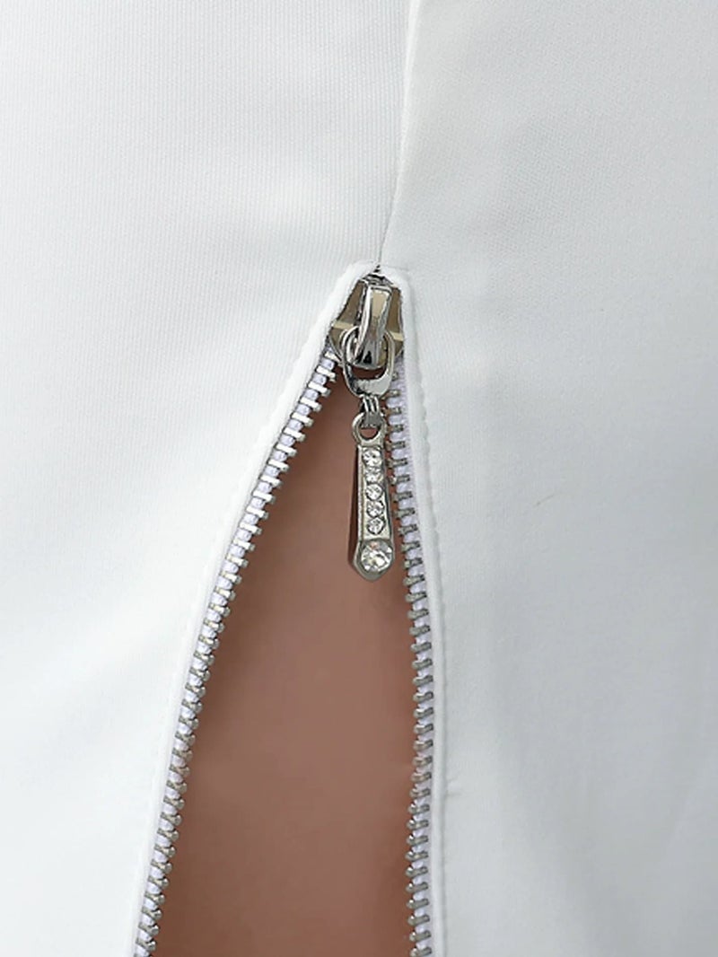 4. ジップデザイン高級ミニドレス