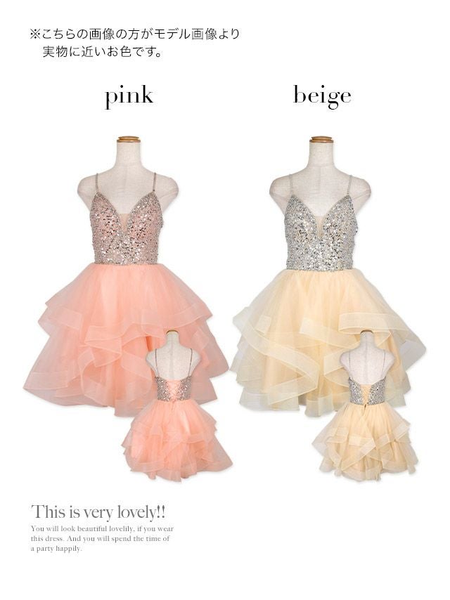 バックスピンドルキャミソールゴージャスビジュー切替ボリュームフレアミニドレスのカラバリ画像