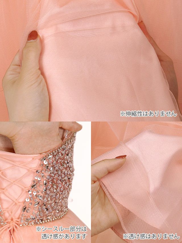 バックスピンドルキャミソールゴージャスビジュー切替ボリュームフレアミニドレスの商品詳細アップ画像