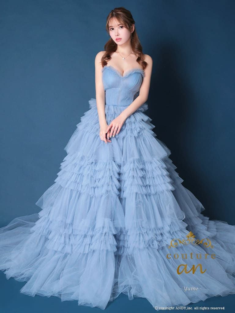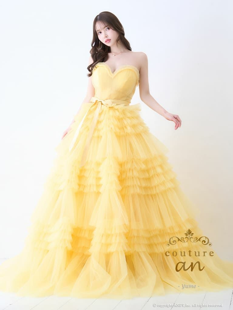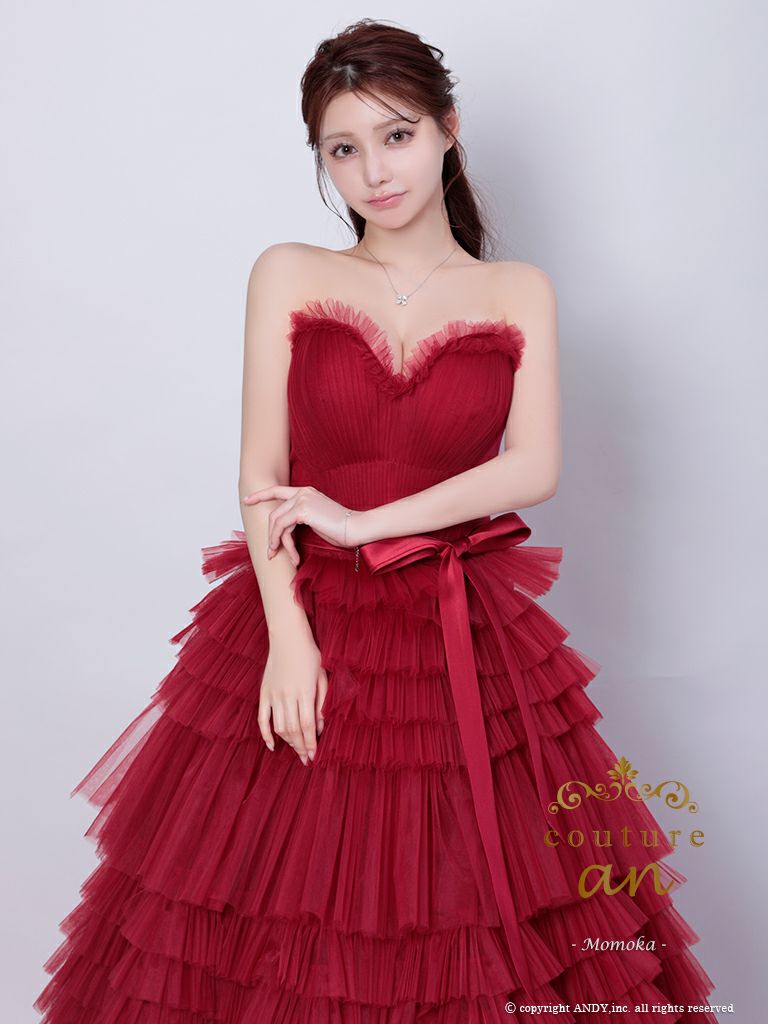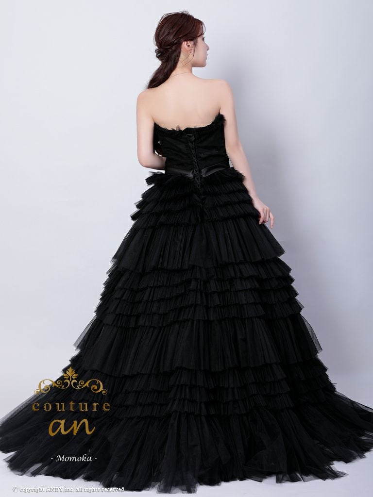 5. [couture an/クチュールアン] 高級 バースデー ベアトップ 段チュール リボン バストカット Aラインロングドレス