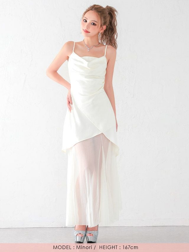 5. 安い Aラインロングドレス ホステス キャミソール シースルー シンプル 大人 上品 背中魅せ キャバドレス (波北かほ着用)