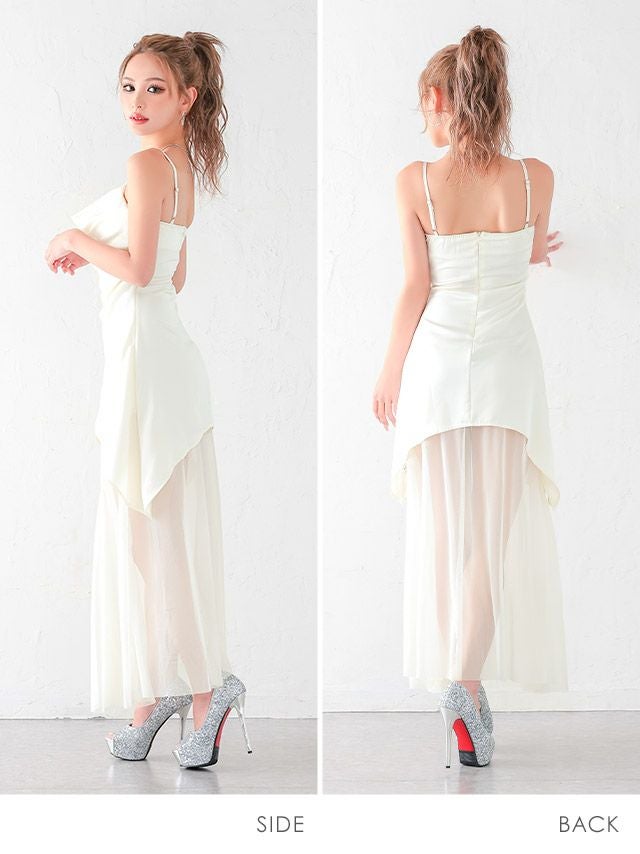 4. 安い Aラインロングドレス ホステス キャミソール シースルー シンプル 大人 上品 背中魅せ キャバドレス (波北かほ着用)