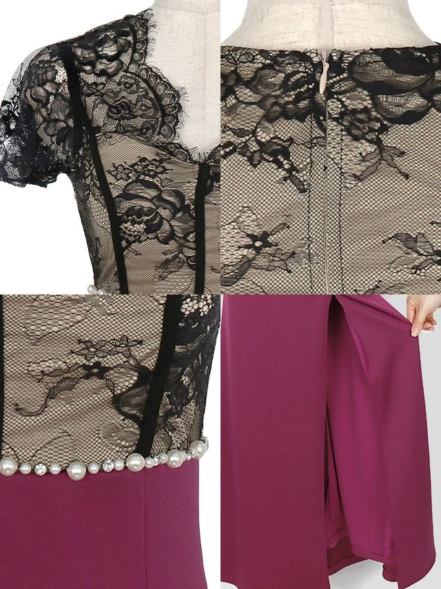 スカラップレース切替ロングスリット半袖タイトロングドレスの商品詳細1