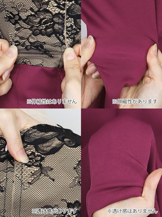 スカラップレース切替ロングスリット半袖タイトロングドレスのカラーバリエーション