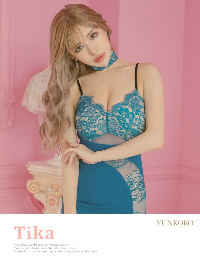 キャバドレス ミニ丈 大きいサイズ キャバクラ クラブ Tika ティカ ヌーディーフラワーレースキャミソールストレッチドロストスカートチョーカー付きタイトミニドレス