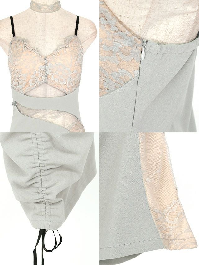 4. ヌーディーフラワーレースキャミソールウエストカットチョーカー付きタイトミニドレス (Sサイズ~Lサイズ) (ゆんころ/キャバドレス着用)