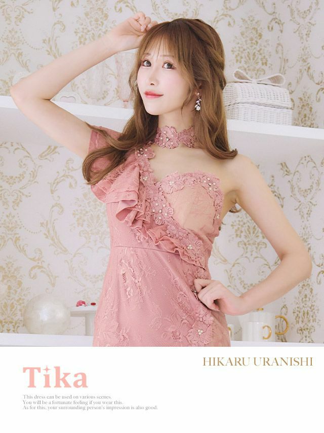 着るだけで上品で可愛いが叶う♪ サイドシースルーチョーカーネック立体フラワー刺繍ビジューワンショルダータイトミニドレス (Sサイズ~Lサイズ) (浦西ひかる/キャバドレス着用)