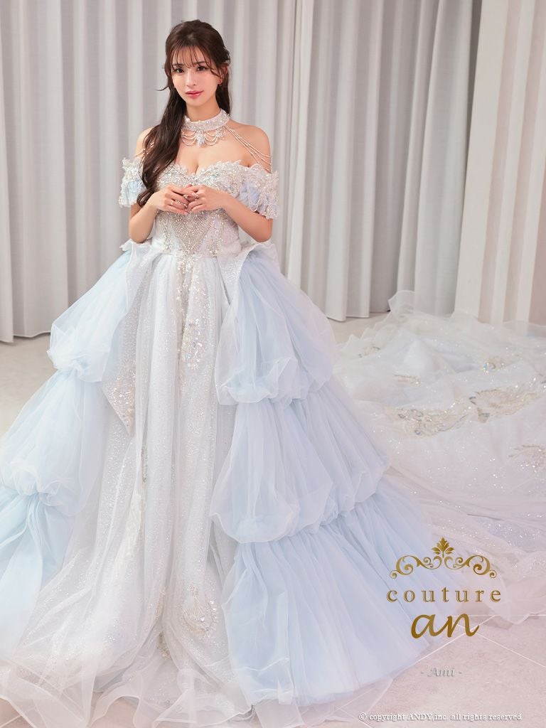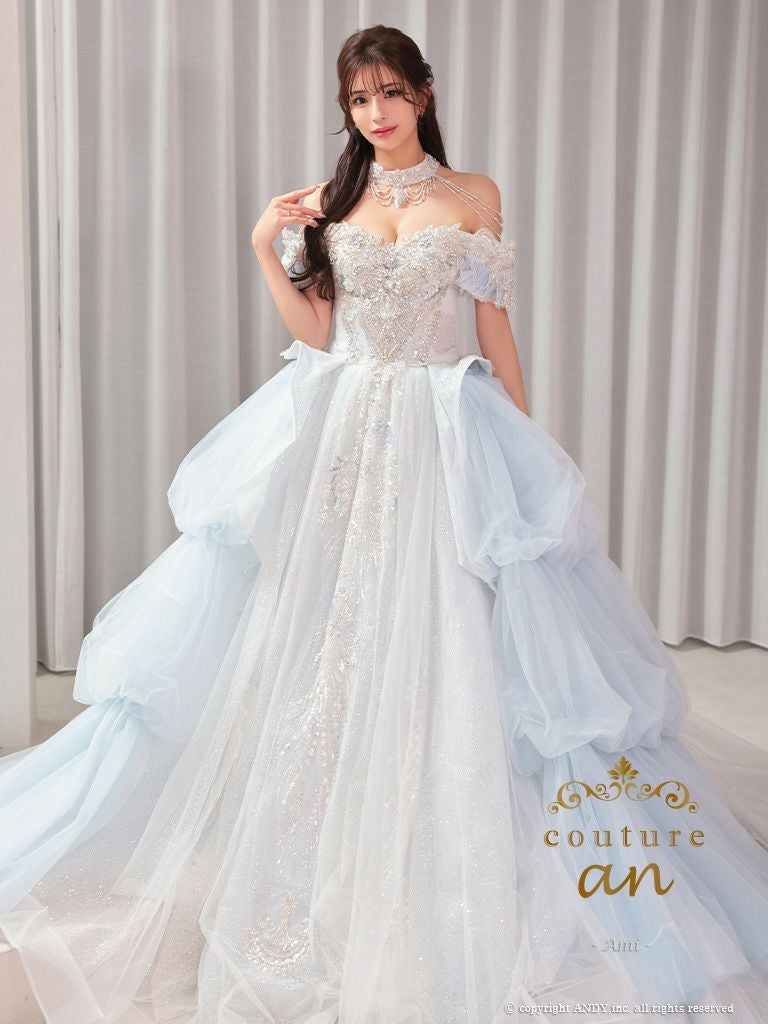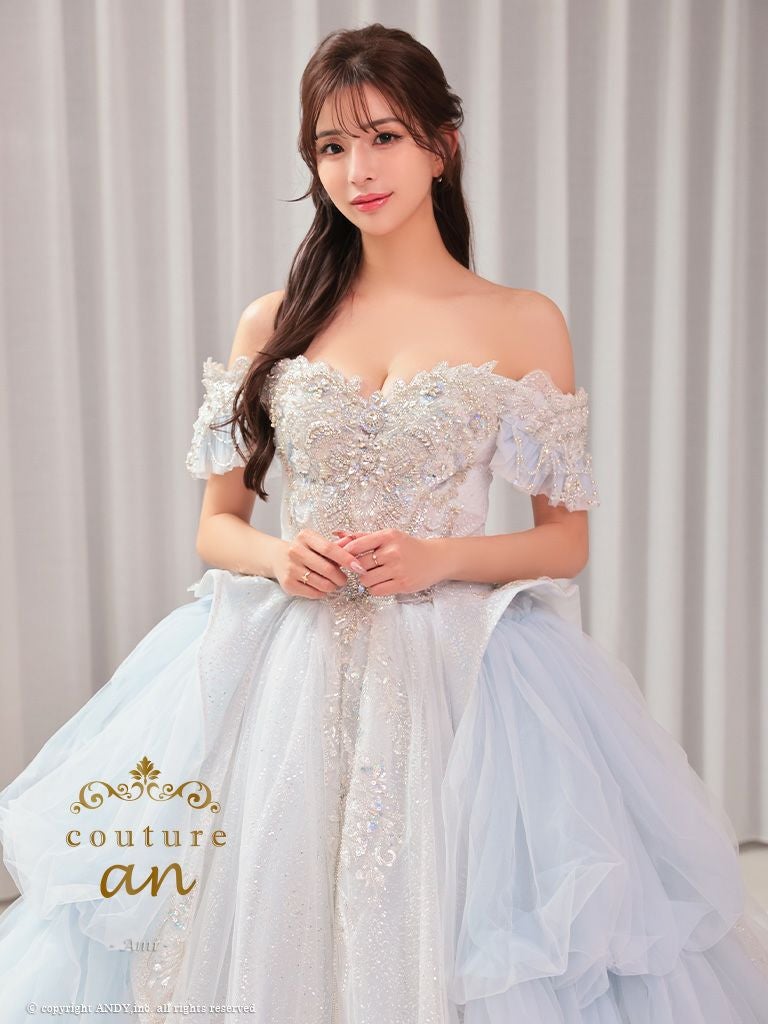 キャバドレス couture an クチュール アン 高級 オフショルダー 半袖 レース ビジュー ラメ チュール フリル 刺繍 レース バースデー プリンセスライン キャバドレス