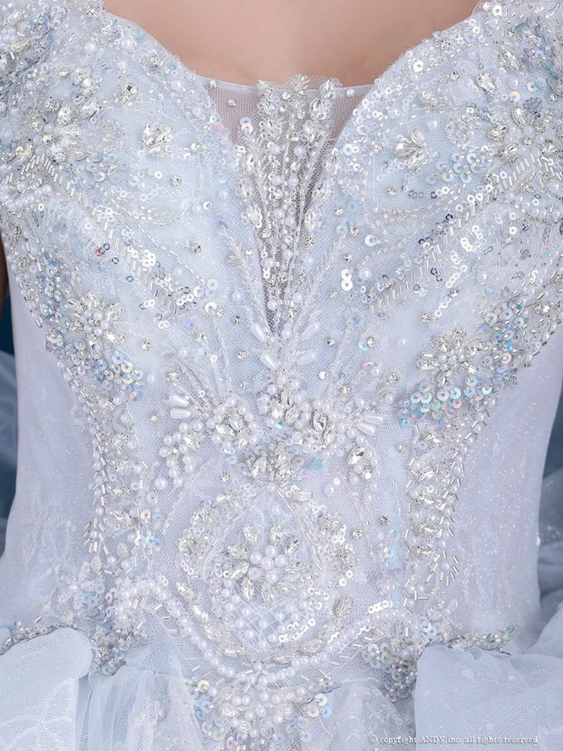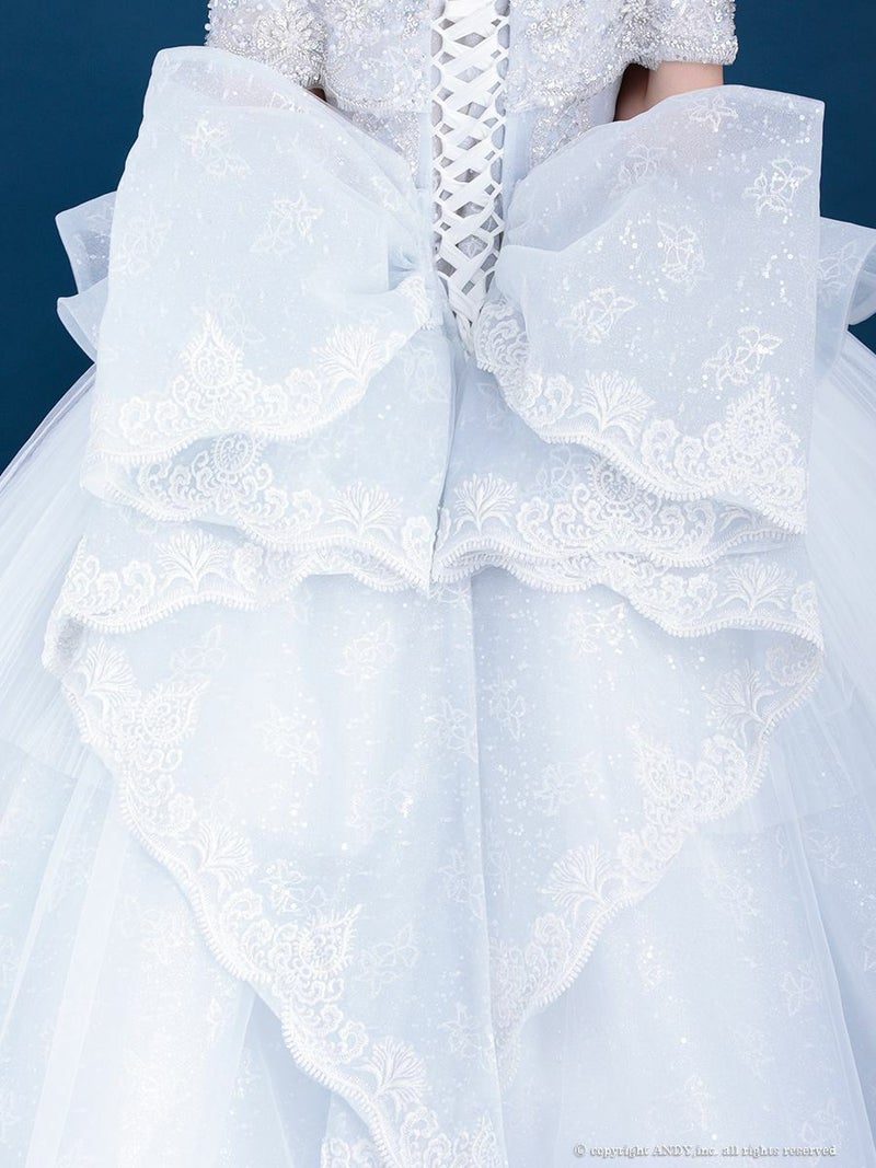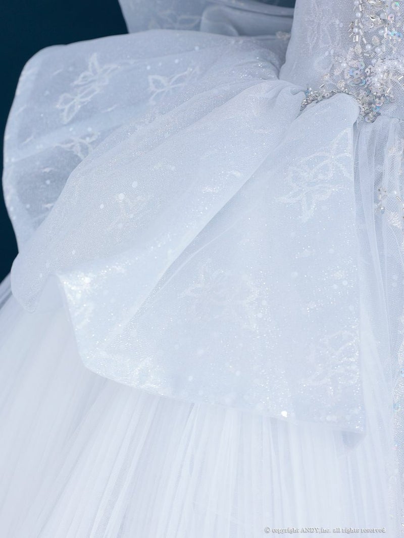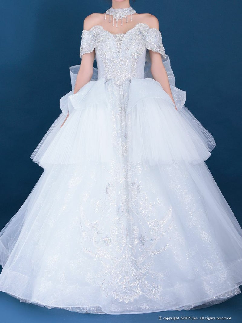 5. [couture an/クチュールアン] 高級 バースデー オフショルダー スパンコール ビッグリボン チョーカー ビーズ ゴージャス Aラインロングドレス