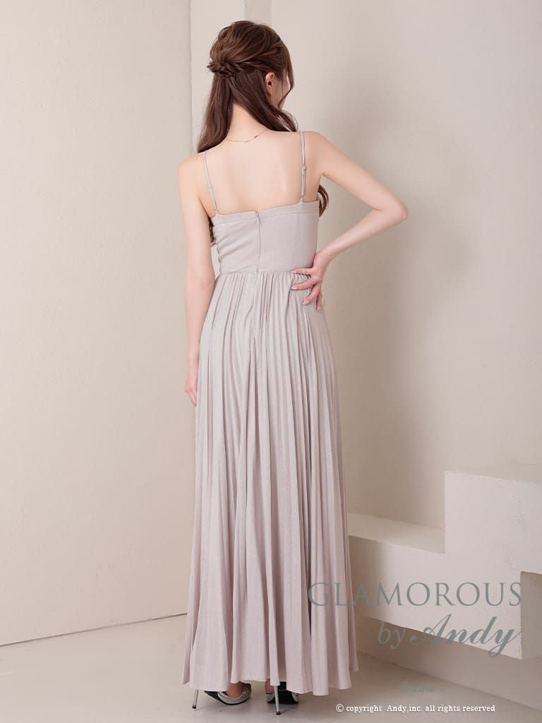 4. [AndyGLAMOROUS/アンディグラマラス] 高級 キャミソール ワンカラー バストカット ラメ ビジューチェーン タック プリーツ Aライン ロングドレス