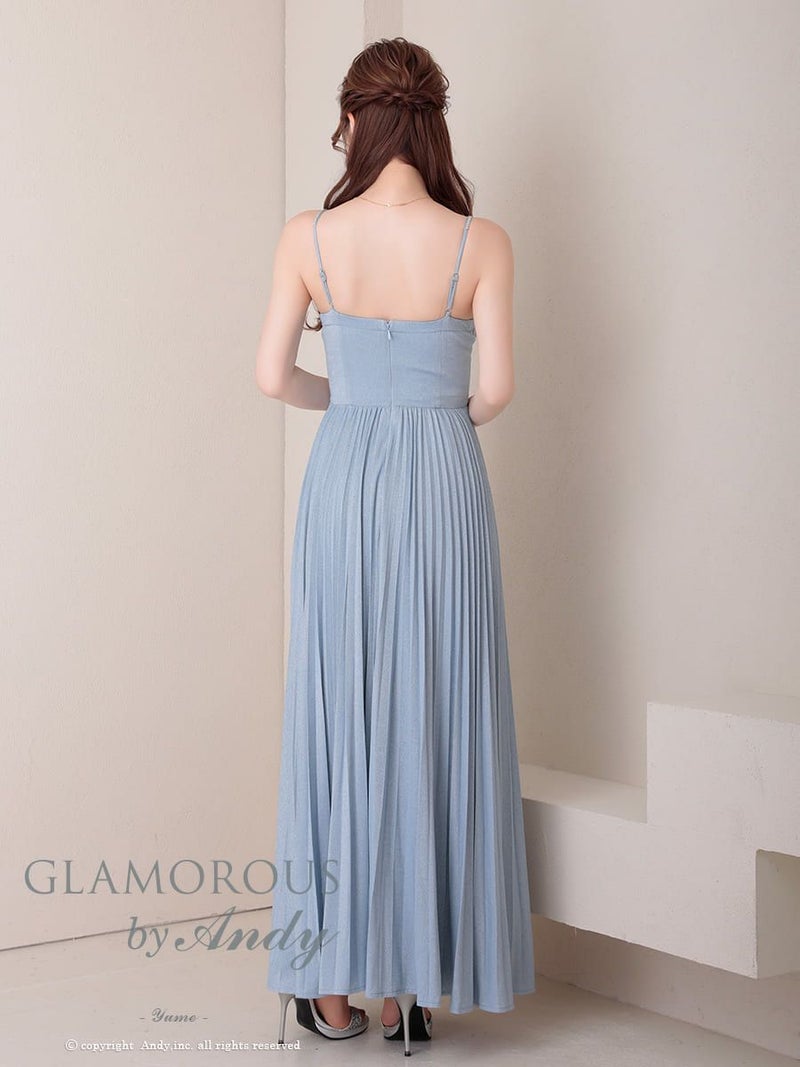 キャバドレス AndyGLAMOROUS アンディグラマラス  高級 キャミソール ワンカラー バストカット ラメ ビジューチェーン タック プリーツ Aライン ロングドレス