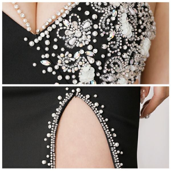 スリットのビジューデザインが美麗☆ [Angel-R/エンジェルアール] 高級Vネックビジューコードキャミソールくびれチュール切替タイトロングドレス