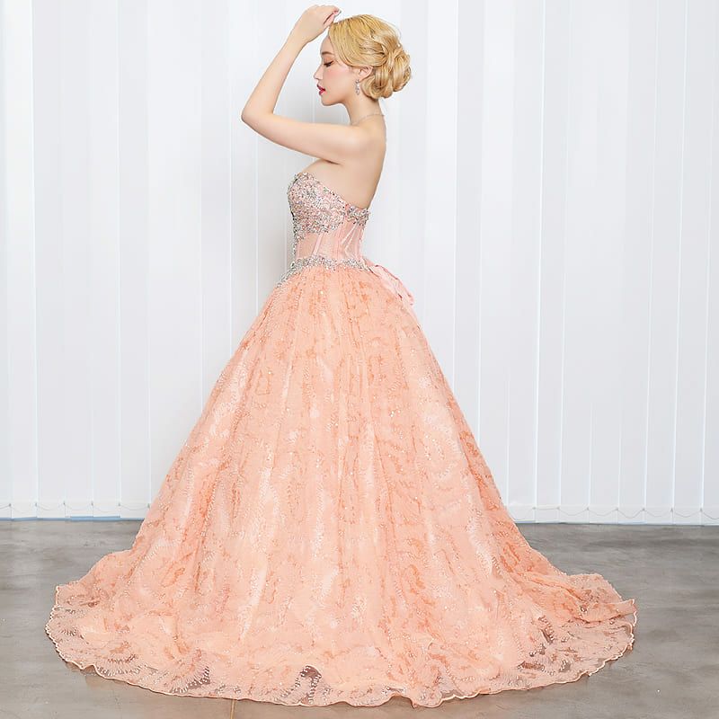 4. [Angel-R/エンジェルアール] 高級 バースデーオフショルダーフラワー刺繍ビジューウエストシースルーAラインロングドレス