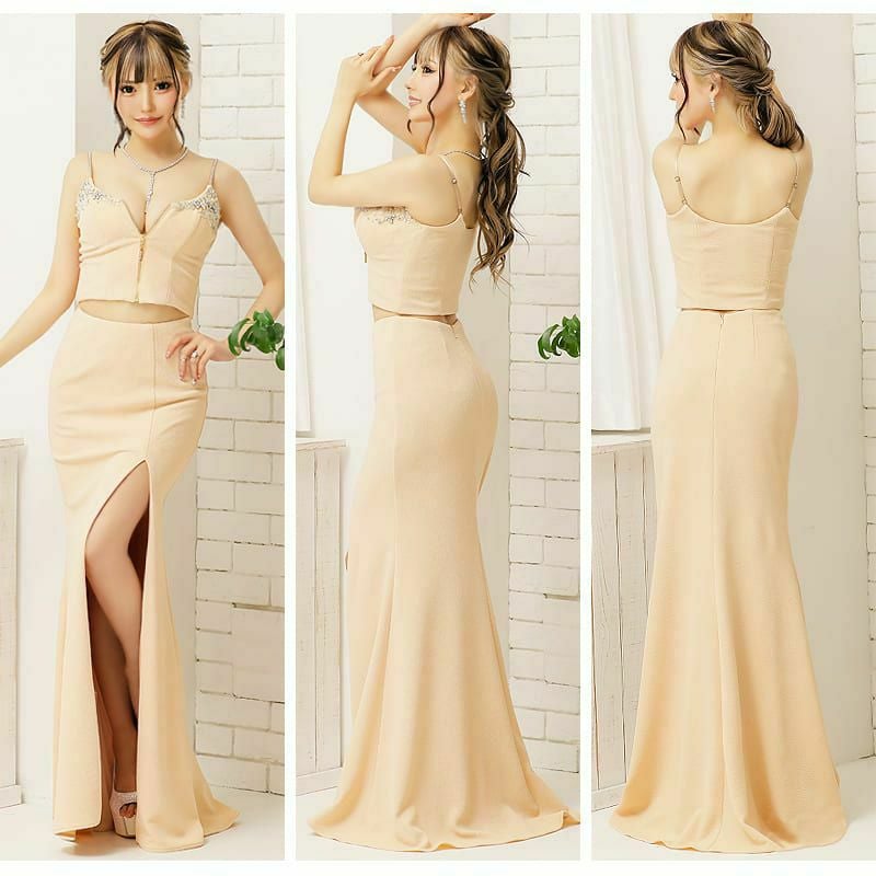 5. SALE [Angel-R/エンジェルアール] 高級バストビジューフロントファスナーセットアップキャミソールロングドレス