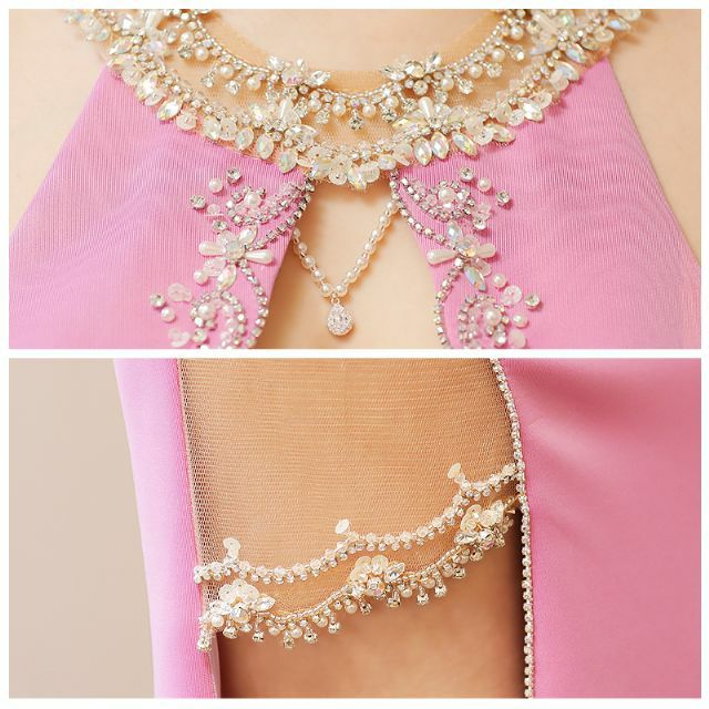 4. [Angel-R/エンジェルアール] 高級デコルテバストビジューホルターネックパールチェーンくびれタイトロングドレス