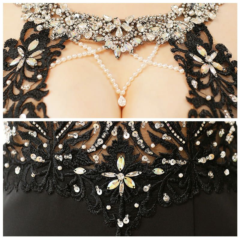 5. [Angel-R/エンジェルアール] 高級 バストカット デコルテビジュー ホルターネック 谷間魅せ タイトロングドレス