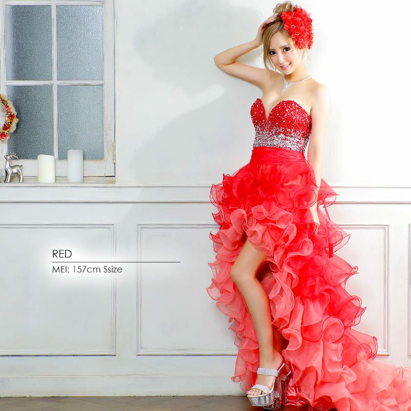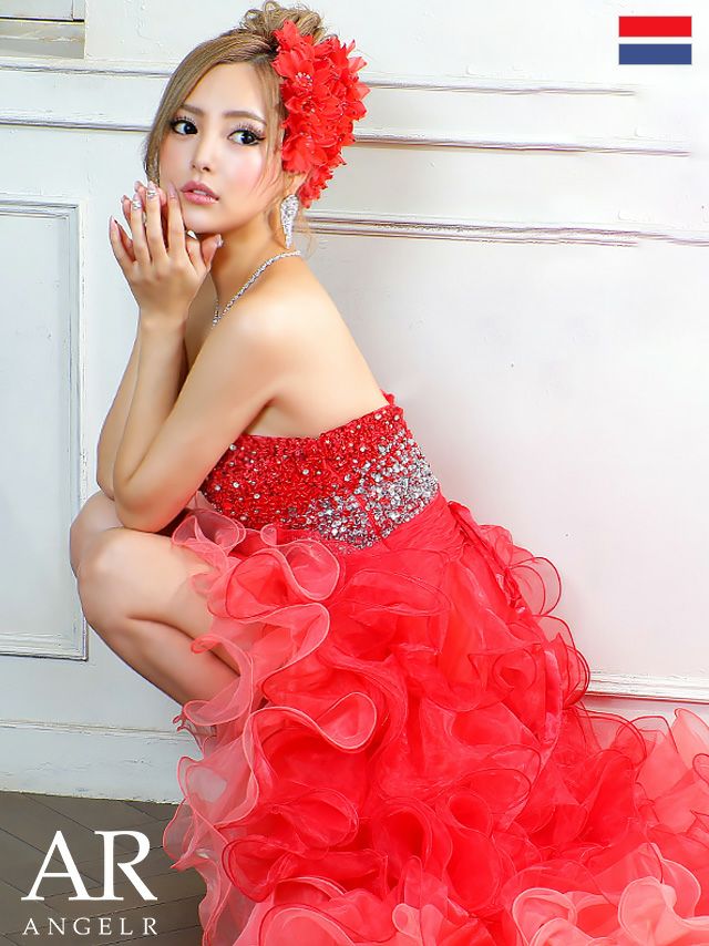 ビジュの輝きで存在感抜群★ [Angel-R/エンジェルアール] 高級ビジューベアトップ×ボリュームチュールロングテールドレス