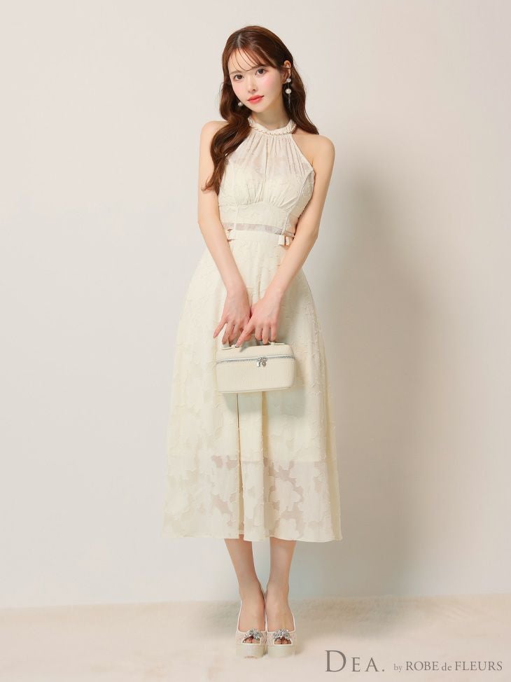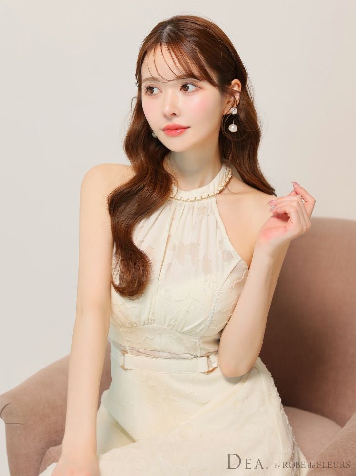 6. [DEA.byROBEdeFLEURS/ディアバイローブドフルール] 高級ホルターネックウエストベルトレースシンプルAラインロングドレス