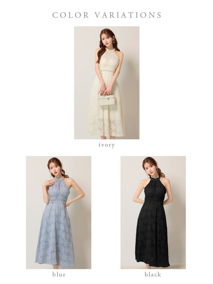 4. [DEA.byROBEdeFLEURS/ディアバイローブドフルール] 高級ホルターネックウエストベルトレースシンプルAラインロングドレス