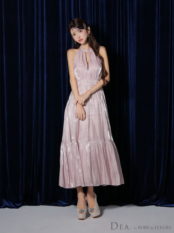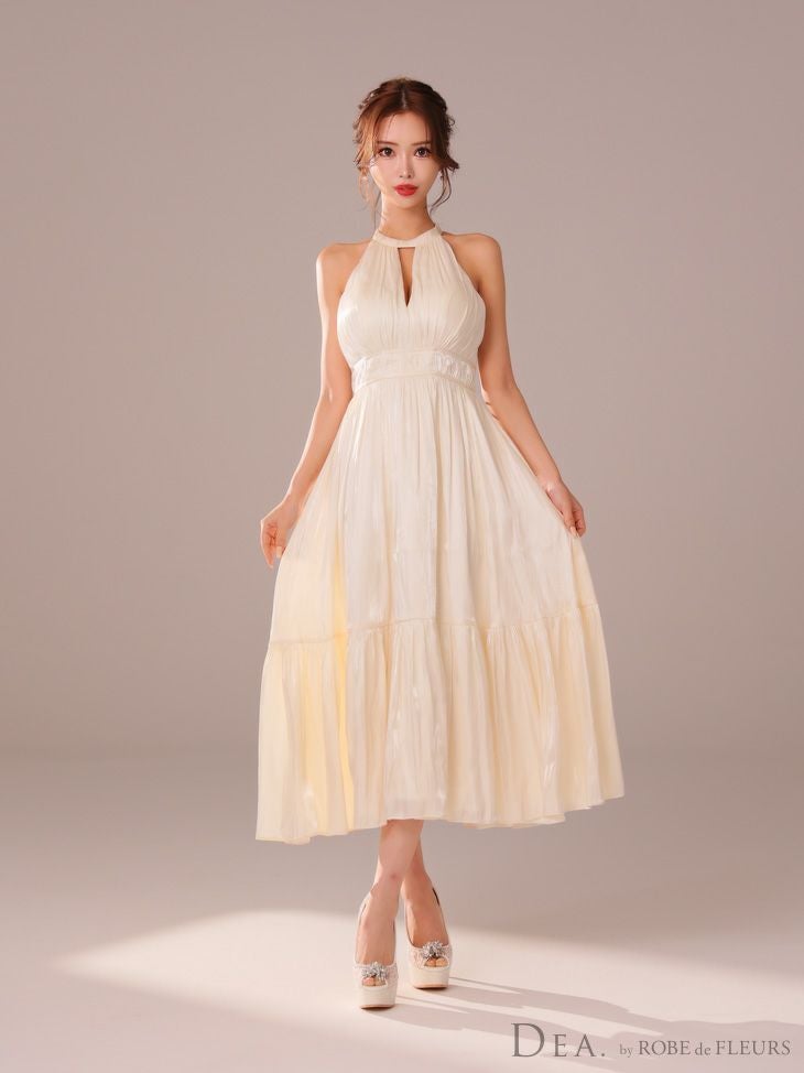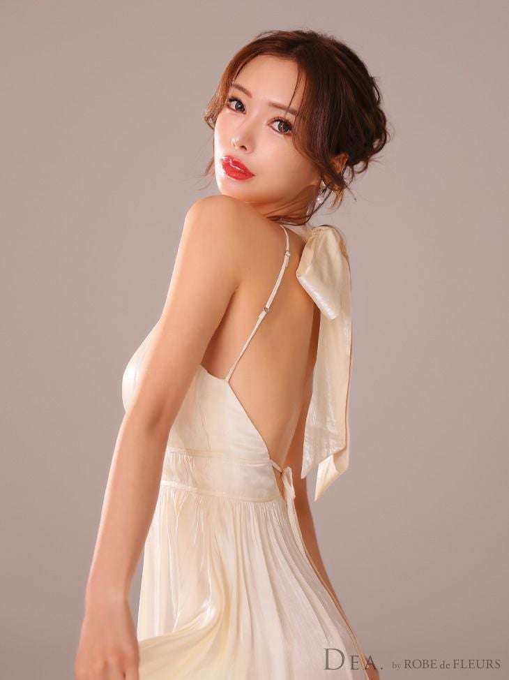 5. 予約商品【6月中旬入荷予定】[DEA.byROBEdeFLEURS/ディアバイローブドフルール] 高級 ブランド Aラインロングドレス 谷間 ホルターネック ネックリボン 2way バストカット サテン
